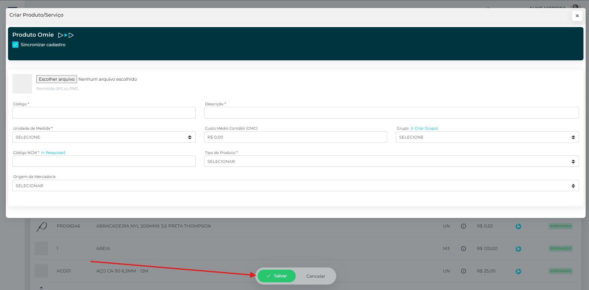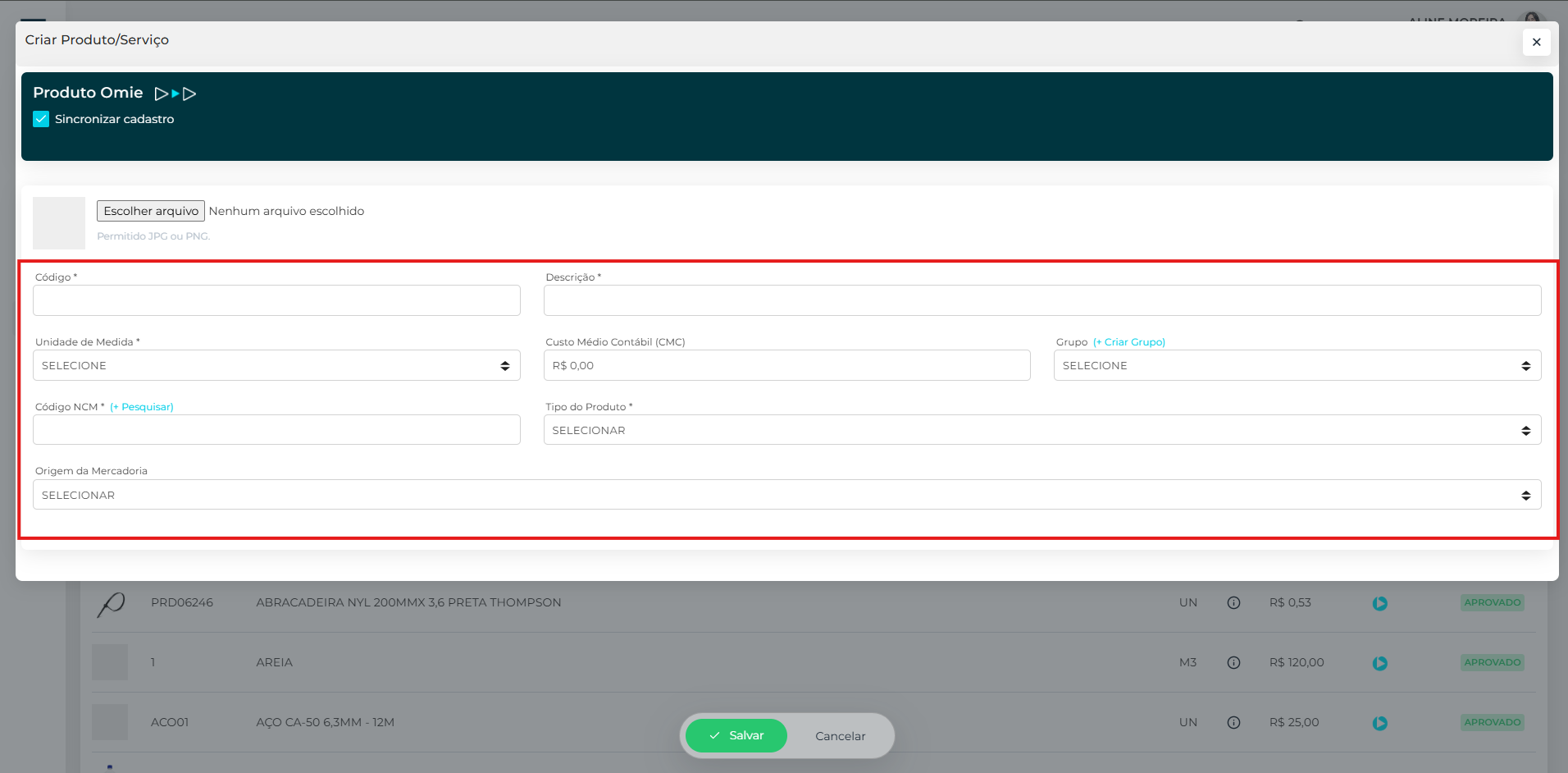 Além disso, para que o cadastro do produto seja integrado ao Omie, será necessário o preenchimento dos campos Código NCM, Tipo do Produto e Origem da Mercadoria, pois estes são campos essenciais para o sistema contábil Omie.