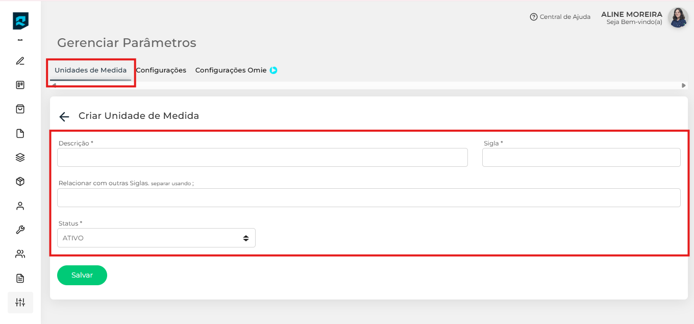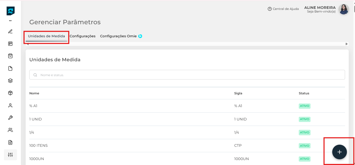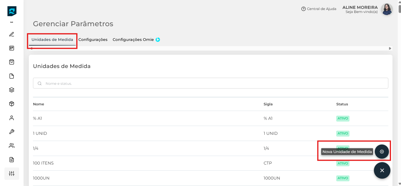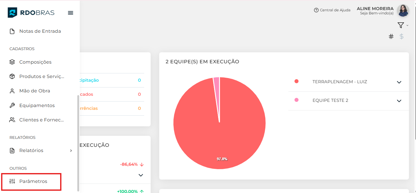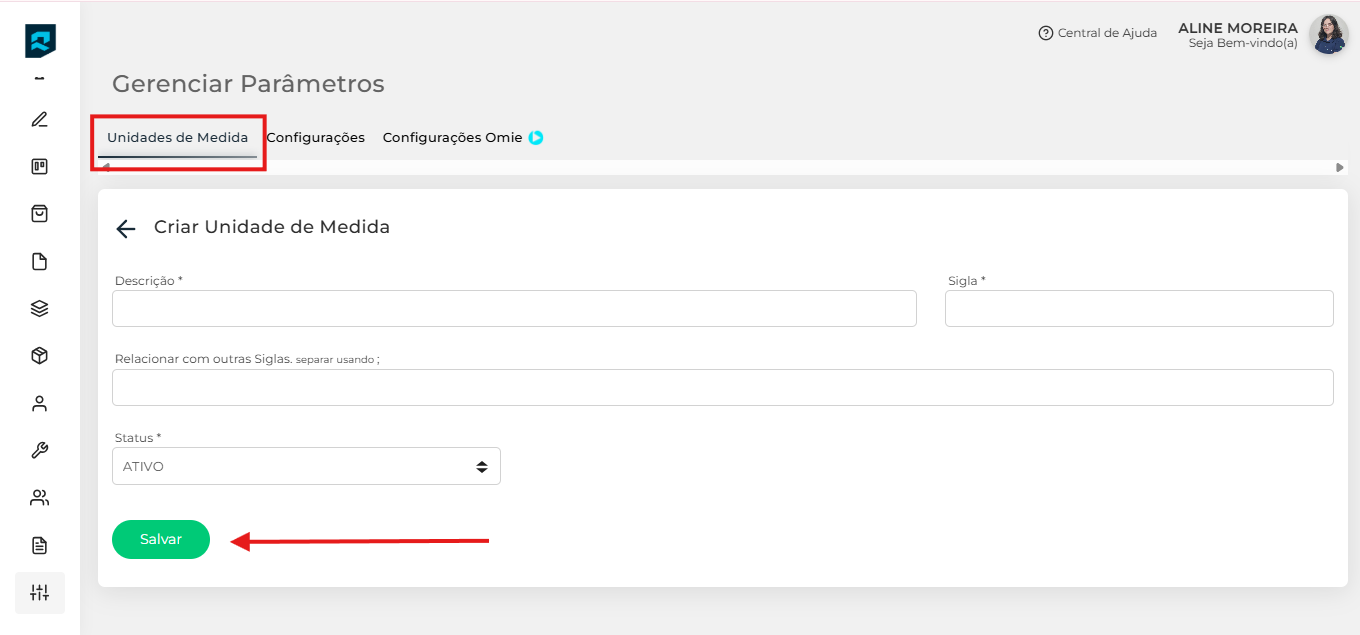 Para começar, vá até o menu lateral e clique em “Parâmetros”.