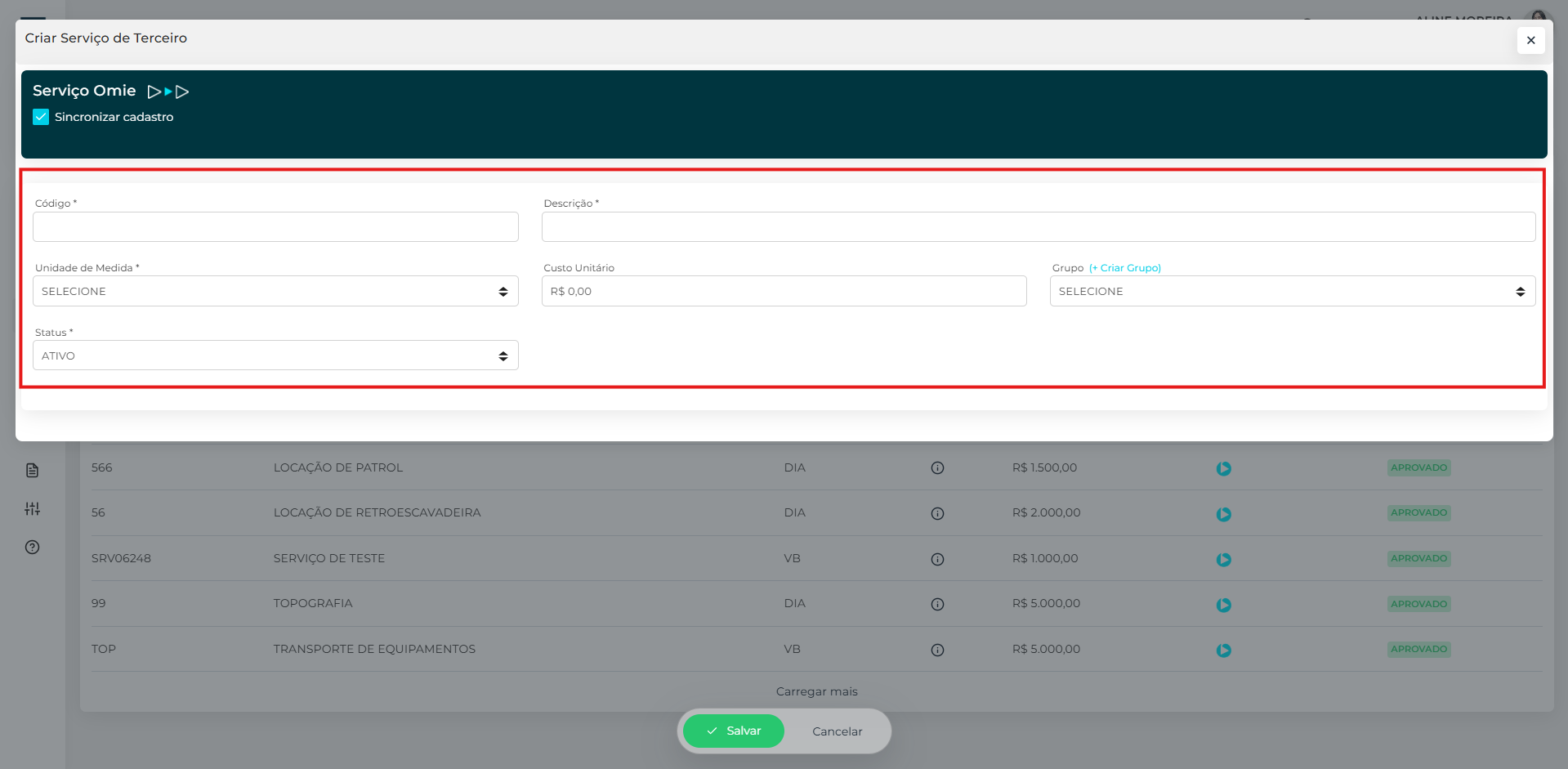 Feito isso, o seu serviço de terceiro estará cadastrado no RDObras e integrado ao Omie.