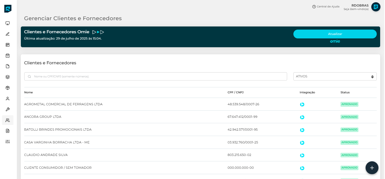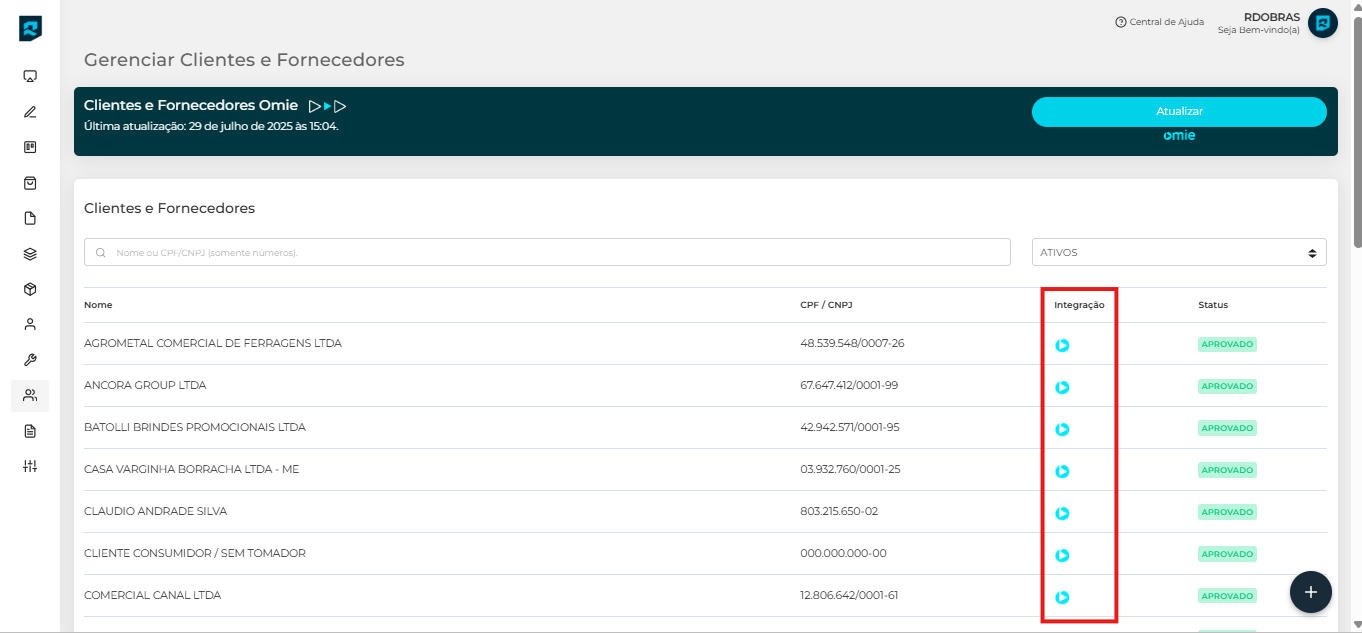 Cadastros já existentes no Omie também são importados automaticamente para o RDObras