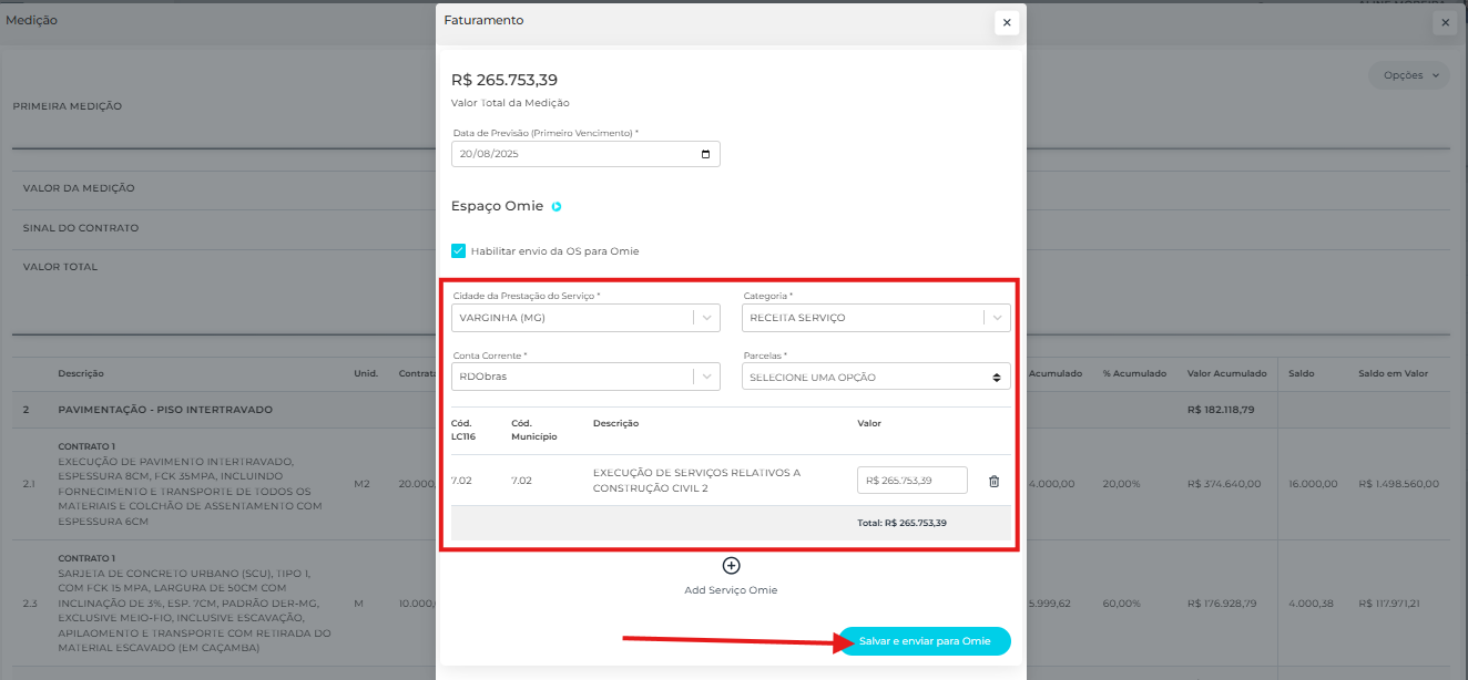 Após a aprovação, a partir do RDObras será possível faturar a medição, gerando então uma Ordem de Serviço no sistema contábil Omie.